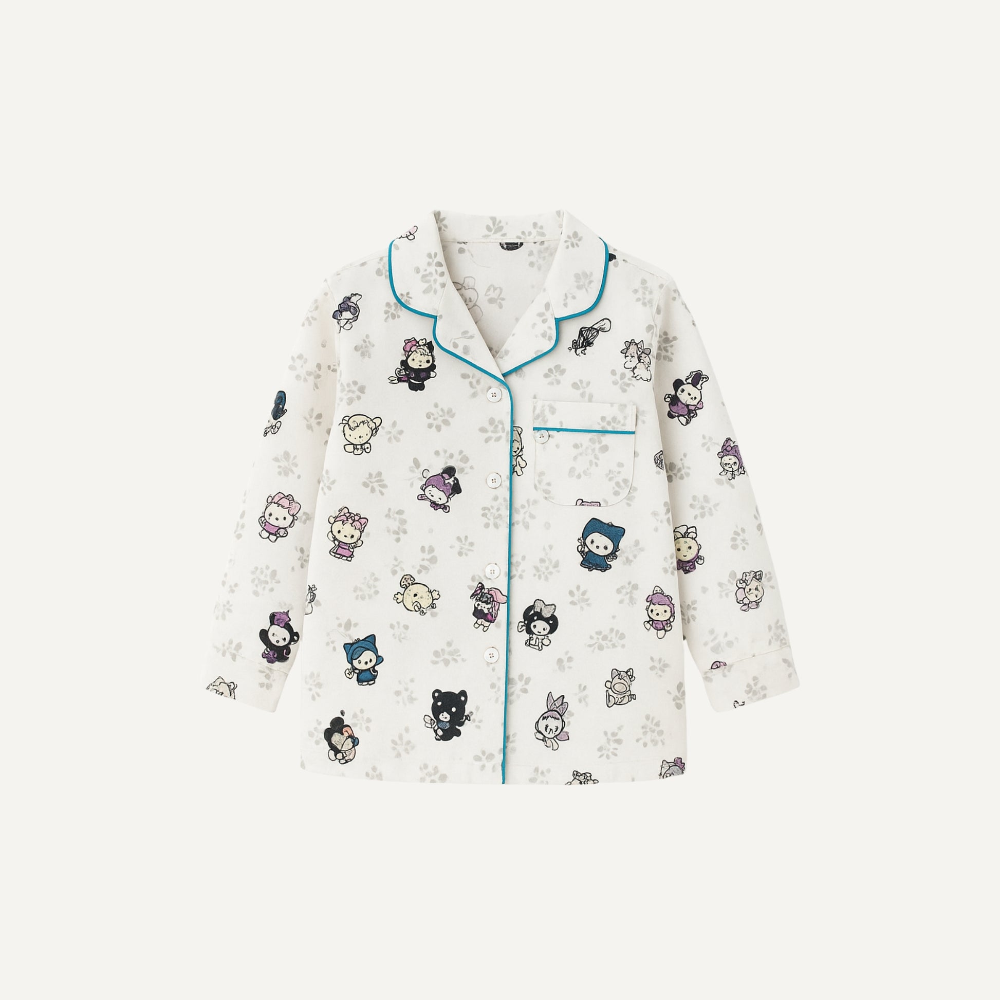 Design: Fun cartoon character print on a white base with button-down shirt & pocket