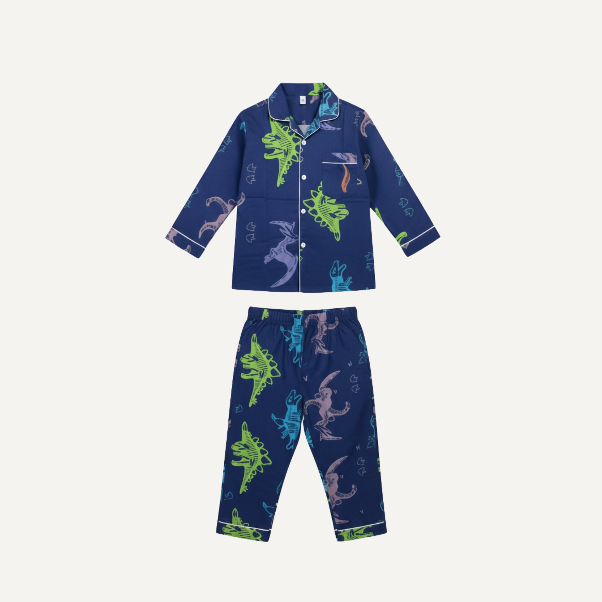 Kids Dinosaur Fossil Night Suit – Unisex Cotton Pajama Set